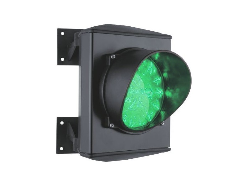 Ampel 230 V mit 1 grünen Linse Ø 120 mm. Der Lieferumfang umfasst 1 Glühbirne mit 40W und großer Fassung E27. Das Gehäuse besteht aus Aluminium und verfügt über eine Halterung aus Polyamid. Die Ampel ist um 200° drehbar.