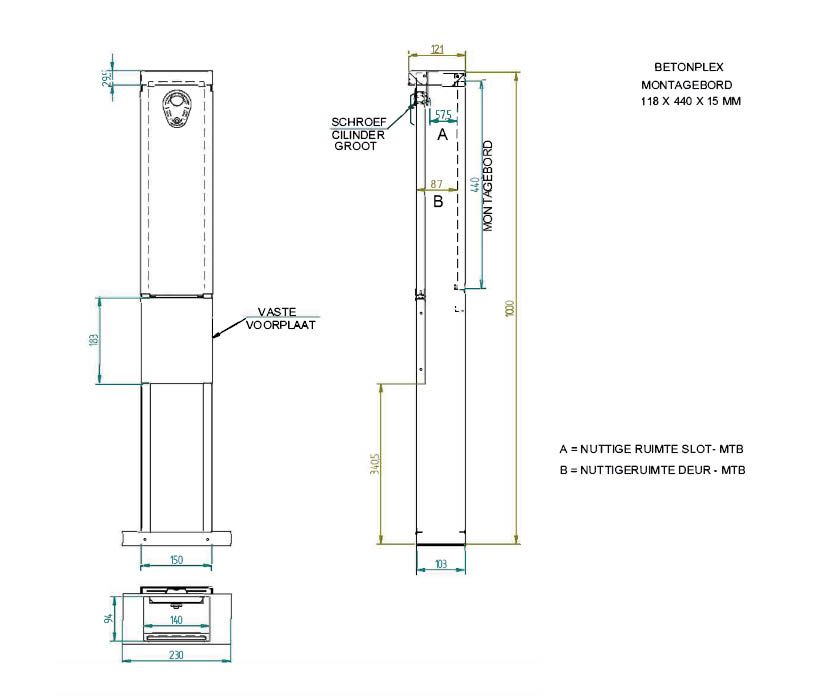 | Abmessungen | 1000x150x103 mm (HxBxT) |