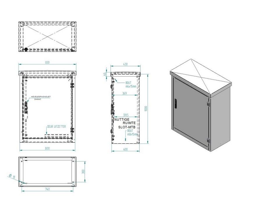 Dieser Kabelverteilerschrank, der auch als Außenschrank bezeichnet wird, ist aus Edelstahl 304 gefertigt und in RAL7037 beschichtet. Der Kasten hat eine Höhe von 1000 mm, eine Breite von 800 mm und eine Tiefe von 400 mm. Der nutzbare Einbauraum beträgt etwa 80 % der angegebenen Tiefe. Das Gehäuse besitzt eine schwenkbare Tür mit Schloss und Montageplatte. Wenn der Netzanschluss nicht in Ihrem Haus bzw. in Ihrer Wohnung erfolgen kann, beantragt Ihr Netzbetreiber die Installation eines solchen Kabelverteilerschranks. Der Schrank ist für diesen Zweck geeignet und erfüllt die Sicherheits- und Konstruktionsanforderungen, beispielsweise in Bezug auf die Schlag- und Stoßfestigkeit sowie die Wetterfestigkeit usw. Für einige Anschlüsse wird ein höherer Schrank benötigt; unsere Artikelnummer dafür lautet 400800H.