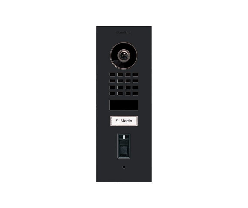 DoorBird IP Video-Türsprechanlage D1101FV, Unterputzmontage, Edelstahl, Graphitschwarz, Mit Fingerabdruckscanner