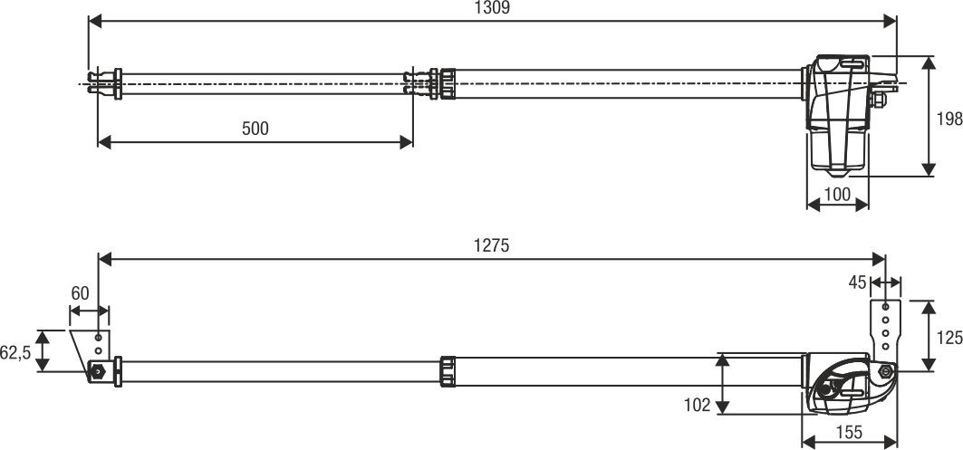 Der Drehtorantrieb BILL50M DX eignet sich für Torflügel und doppelte (Holz-)Garagentore, die maximale Flügellänge beträgt 4 mtr. Dieser Motor ist geeignet für Drehtore mit Säulen kleiner als 150x150 mm. Das schlanke Aluminiumgehäuse enthält ausschließlich hochwertige Stahl- und Bronze-Teile, was eine lange Lebensdauer gewährleistet. Ein DX-Motor wird auf der rechten Seite montiert (der Flügel öffnet sich zu Ihnen hin).