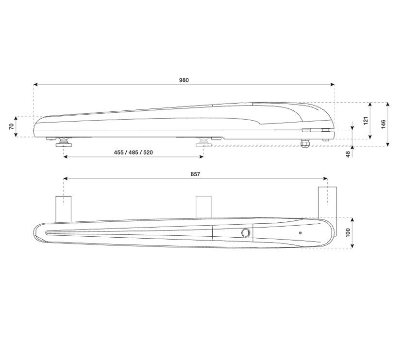 Die anthrazitgraue BOB50ME.DA Drehtorantrieb ist geeignet für Drehtore verschiedener Größen mit einer maximalen Flügellänge von 5 m und einem maximalen Öffnungswinkel von 110 Grad. Der Toröffner mit einem Hub von 455 mm verfügt über eingebaute Endanschläge für die geschlossene und geöffnete Position, was ein Anschlag im Straßenbelag überflüssig macht. Durch seine geringen Abmessungen und innovatives Design kann der Motor schnell und einfach montiert werden. Die qualitativ hochwertigen Materialien sorgen für eine lange Lebensdauer. Mit einem persönlichen Schlüssel kann der Motor an der Oberseite einfach entriegelt werden. Der BOB50ME.DA ist mit einem Encoder ausgestattet. Das moderne Erscheinungsbild in den Farben Anthrazit und Schwarz verleiht dem Motor ein zeitgemäßes Design.