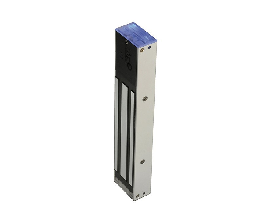 Klebemagnet V3SR Aufbau zur Offen- oder Geschlossenhaltung von Türen bis 300 kg. Inklusive roter und grüner Beleuchtung, Sicherheitskabel und Ankerplatte. Bei Stromausfall öffnet die Tür sofort. Dieser Magnet ist besonders für den Innenbereich geeignet.