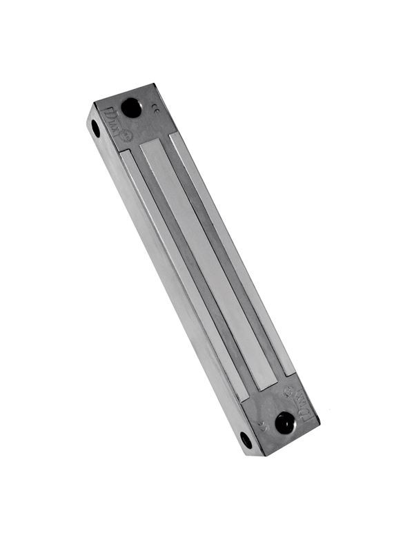 Edelstahl-Haftmagnet zum Aufbau, um Türen oder Tore bis zu 180 kg offen oder geschlossen zu halten. Vandalismusbeständig mit Signalrelais, Sicherheitskabeln und Ankerplatte. Bei Spannungsabfall wird die Tür sofort geöffnet. Sehr geeignet für den Außenbereich.