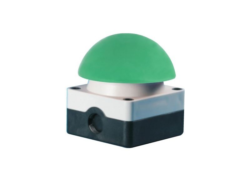 Stoßfeste Drucktaste mit grünem Knopf. Wasserdicht und für den Einsatz im Freien geeignet.