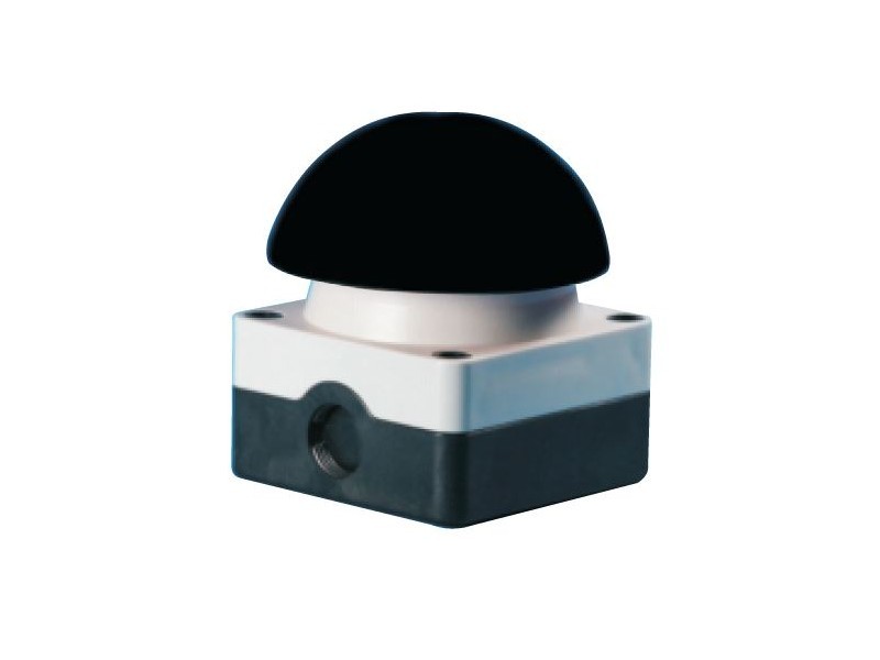Stoßfeste Drucktaste mit schwarzem Knopf. Wasserdicht und für den Einsatz im Freien geeignet.