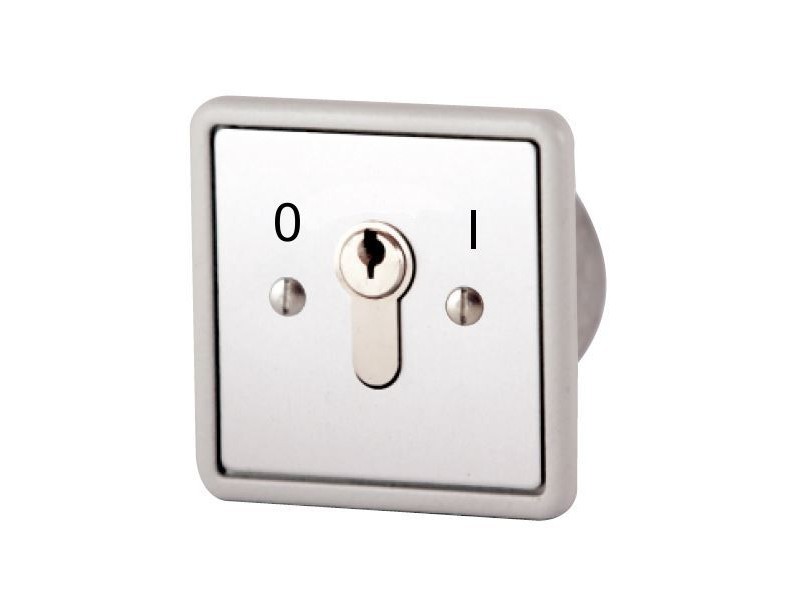 Schlüsselschalter 0/1 zum Einbauen mit Euro-Profilzylinder Mit Frontplatte aus Aluminium und AN/AUS-Kontakt. Der Schlüssel muss in vertikaler Position abgezogen werden.