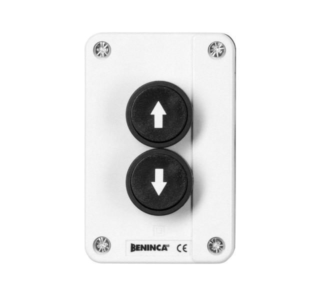 Bedienelement zum Aufbauen mit zwei robusten Drucktasten auf und ab. Das Gerät verfügt über 2 NO-Kontakte.