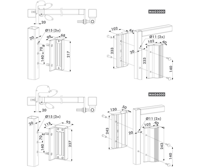 Abmessungen Magnet 217 x 98 x 68 mm (HxBxT)