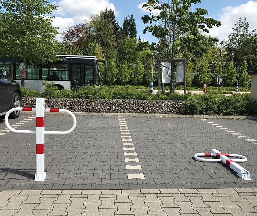 Der manuelle Parkplatzbügel ist mit einem Europrofilzylinder ausgestattet und einfach zu entriegeln. Das Verriegeln erfolgt automatisch über das selbstverriegelnde Schloss.