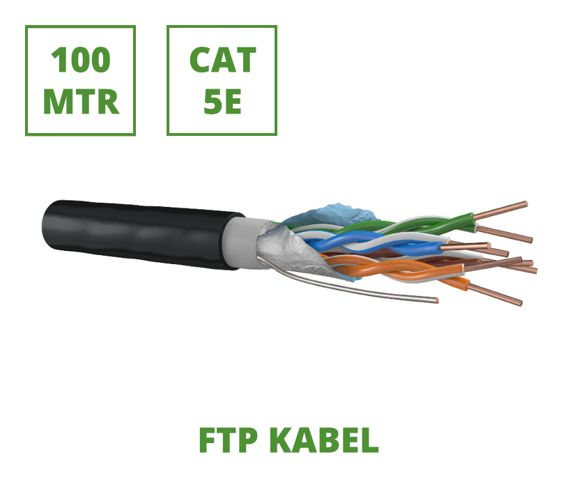 Outdoor FTP kabel met een lengte van 100 meter. De FTP kabel is een CAT5E afgeschermde kabel. Deze kabel wordt gebruikt voor data overdracht.
