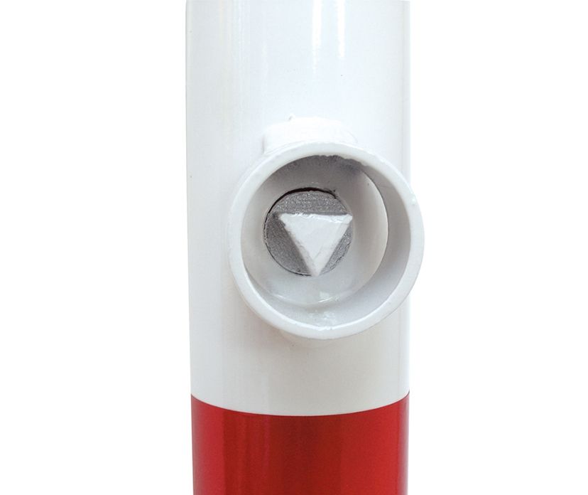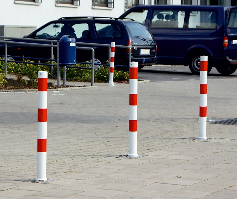 Runder Parkpoller 76 mm, herausnehmbar, ist mit einem Dreikantschloss ausgestattet. Die Verriegelung erfolgt automatisch durch das selbstschließende Schloss. Der herausnehmbare Parkpoller ist vollbadverzinkt und beschichtet. Der weiße Parkpoller ist mit roten reflektierenden Markierungen versehen. Durch die Reflexion ist der herausnehmbare Parkpoller auch bei Dunkelheit gut sichtbar. Der Parkpoller wird inklusive des passenden Sockels geliefert.