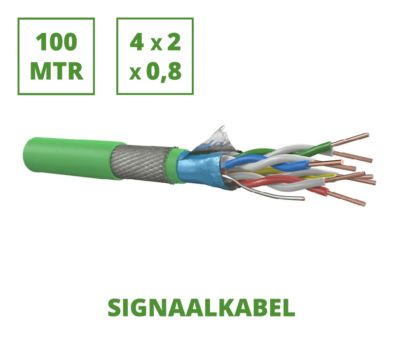 Die Signalleitung 4x2x0,8 mm² mit einer Länge von 100 Metern. Die 8-adrige Signalleitung ist bewehrt und in der Farbe Grün ausgeführt. Eine Signalleitung eignet sich zum Übertragen von Signalen, zur Messung und Steuerung. Die Außenhülle der Signalleitung ist feuerhemmend. Außerdem ist das Kabel in Umgebungen einsetzbar, in denen mögliche elektromagnetische Störsignale auftreten. Zusätzlich ist die Signalleitung mit einer Stahldrahtumflechtung versehen, wodurch sie auch für den unterirdischen Einsatz geeignet ist.
