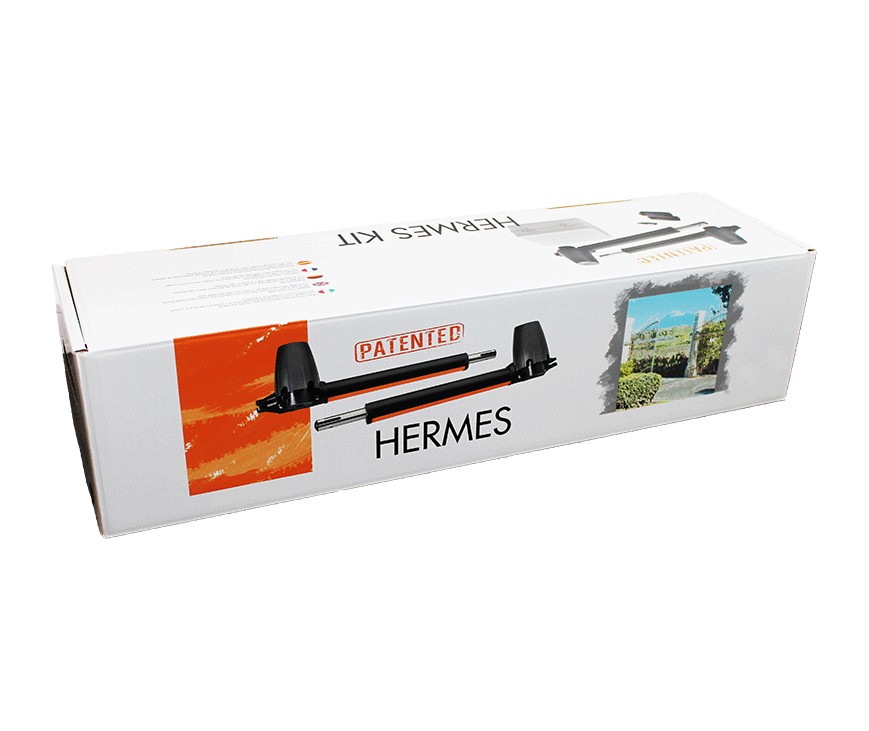 Der lineare Drehtorantriebskit HERMES 250 ist zur Automatisierung eines doppelten Drehtors mit Flügeln bis zu 2,5 Meter geeignet. Die Motoren verfügen über einen Encoder und sind mit Kunststoffabdeckungen versehen. Die leichtgängigen Motoren verlangsamen sich am Ende des Anschlags, sodass sich Ihre Torflügel immer sanft schließen. Da die HERMES-Torantriebe über einen integrierten Endanschlag verfügen, ist es nicht erforderlich, einen Mittelanschlag in der Einfahrt zu montieren. Der Arm der HERMES-Motoren besteht aus einem Edelstahlrohr und zwei Aluminiumprofilen und ist daher hervorragend gegen alle Witterungseinflüsse geschützt. Der Motor ist stoßfest, langlebig und geräuscharm.