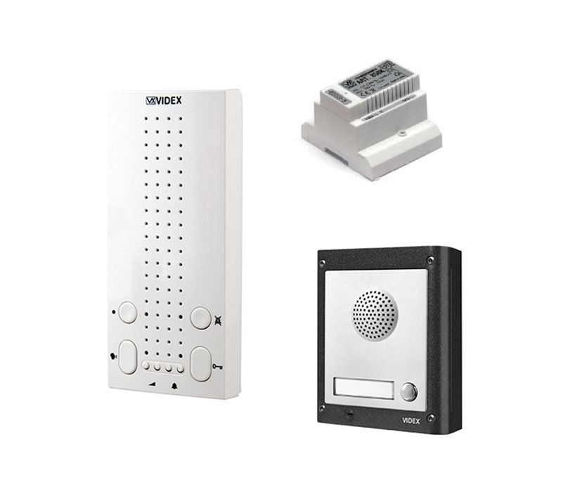 Türsprechanlage-Komplettset 4000 Aufputz mit Freisprech-Innenstation. Dieses Set besteht aus einer Aufputz-Außenstation, einer Innenstation und dem passenden Netzteil. Die Außenstation verfügt über eine Klingeltaste.