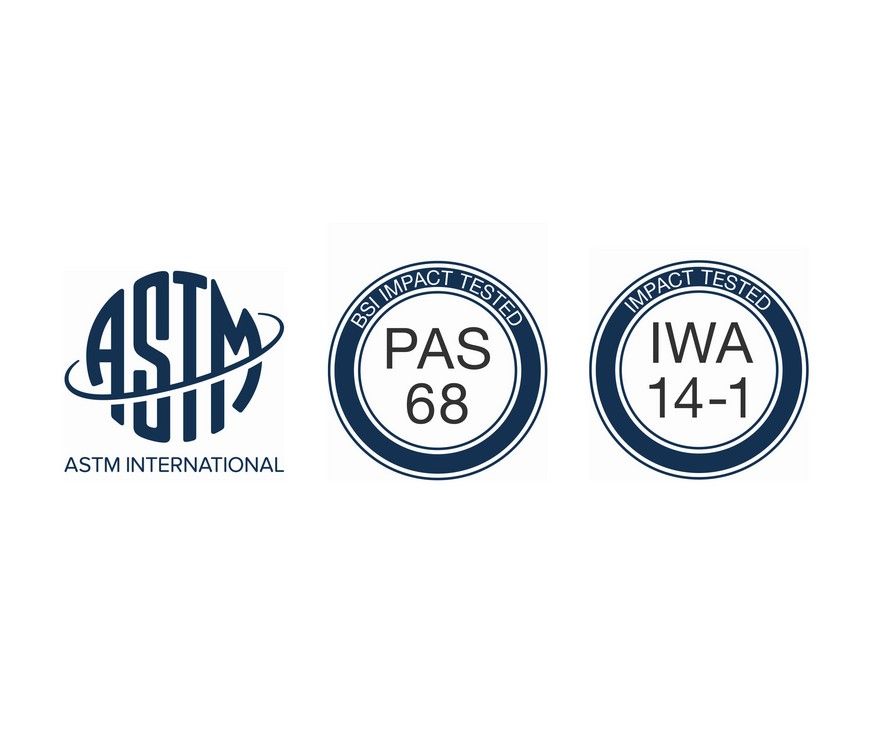 Der MAXIMUM Rampaal ist beständig gegen eine Kollision mit einem 7500-kg-Fahrzeug, das mit einer Geschwindigkeit von 48 km/h auf ihn trifft und erfüllt folgende Zertifizierungen: IWA 14-1: 2013 V / 7200 [N3C] / 48/90: -0.8 / PAS68: 2013 V / 7500 [N3] / 48/90: -0.5 / ASTM F2656 Rating C730 / 7200 - P1 (-0,8).
