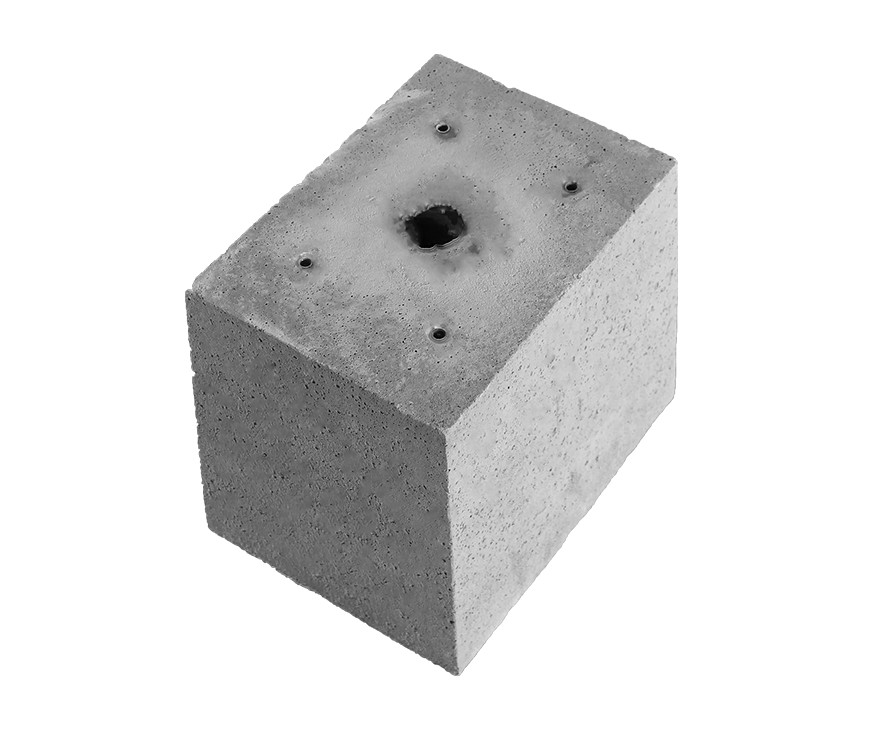 Vorgefertigter Betonsockel von 70 kg, geeignet für die EVA.5 Schrankenanlage und die manuelle Schranke LIMIT4. Der Sockel verfügt über eine Kabeleinführung.